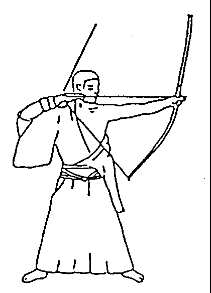 The sixth basic position (6th HASSETSU): the bow is fully drawn.